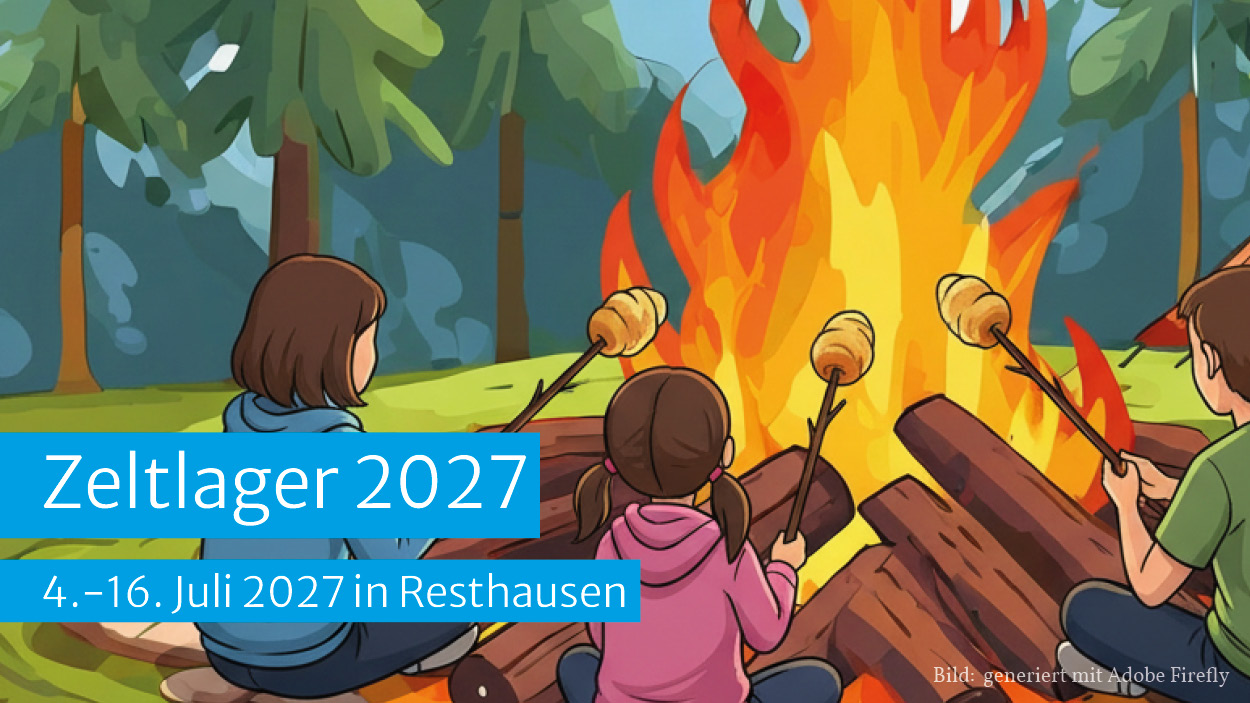 Das Zeltlager 2027 findet traditionell wieder in den ersten beiden Wochen der Sommerferien aus Schleswig-Holstein statt. In dem Zeitraum von Sonntag, den 4.–16. Juli 2027, werden wir 12 Tage nach Resthausen fahren.