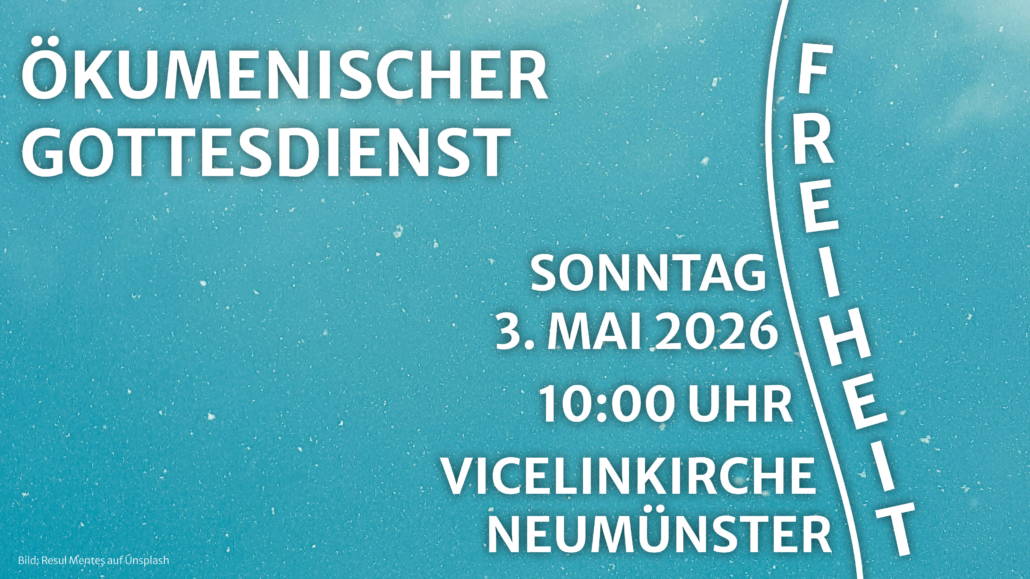Zum Thema Freiheit laden wir am Sonntag, 3. Mai 2026, um 10:00 Uhr zum ökumenischen Gottesdienst in der Vicelinkirche in Neumünster ein.